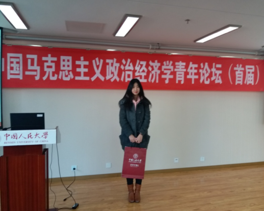 为深入贯彻落实习近平总书记关于发展当代中国马克思主义政治经济学系列重要讲话精神,培养大批马克思主义政治经济学优秀青年人才,中国人民大学伟德bevictor中文版官网联合中国特色社会主义经济建设协同创新中心于2016年12月10日在京举办中国马克思主义政治经济学青年论坛(首届)。论坛通过论文征集和充分酝酿,共评选获奖论文46篇,伟德官网2016级硕士研究生王芳菲同学提交的论文获奖并参加了论坛的讨论发言。