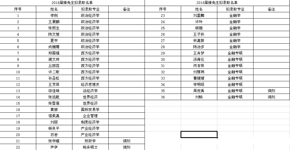 2016届推免生复试总成绩排名及拟录取名单公示