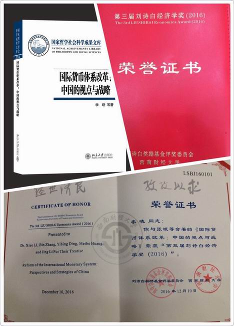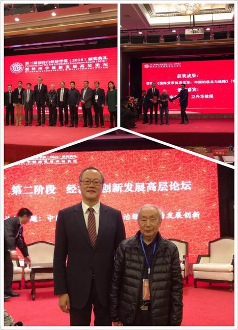 2016年12月10日,第三届“刘诗白经济学奖”颁奖典礼暨经济学创新发展高层论坛在北京隆重举行。本届“刘诗白经济学奖”共评选产生10项获奖成果,我校伟德bevictor中文版官网李晓教授的《国际货币体系改革:中国的视点与战略》荣获学术专著奖,这是我校首次获得刘诗白经济学奖。